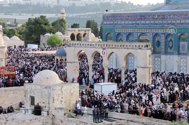 Minlərlə müsəlman Şərqi Qüdsün İçəri şəhər bölgəsində yerləşən Əl-Əqsa məscidində bayram namazı qılıb.