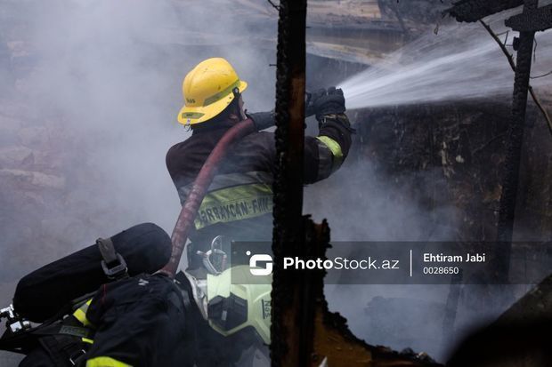 Evin qalan hissəsi və yaxınlıqdakı tikililər yanğından mühafizə olunub.