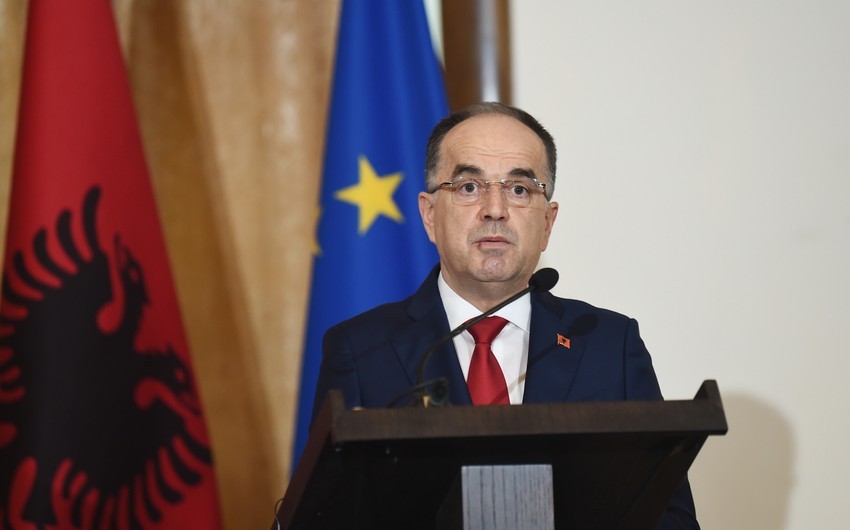 Hər iki ölkənin Dövlət bayraqlarının dalğalandığı meydanda Albaniya Prezidentinin şərəfinə fəxri qarovul dəstəsi düzülüb.