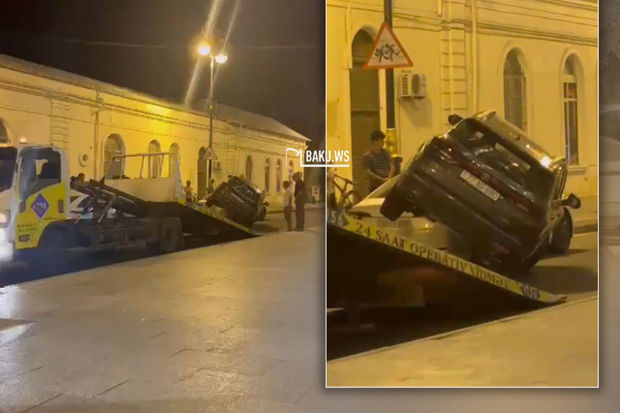 Bakıda qəribə qəza: Bir avtomobil digərinin üzərinə çıxdı