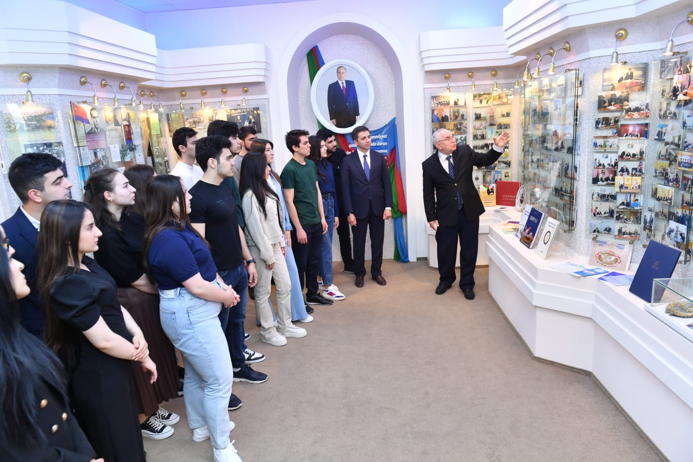 Muzey və kitab sərgisi ilə tanışlıq Ulu Öndər Heydər Əliyevin zəngin, çoxşaxəli həyat və fəaliyyəti barədə tələbələrdə geniş təəssürat yaradıb.