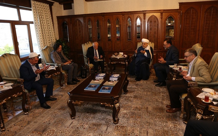 Görüşün sonunda Şeyxülislam Allahşükür Paşazadə həzrətləri tərəfindən qonaqlara xatirə hədiyyələri təqdim edilib.