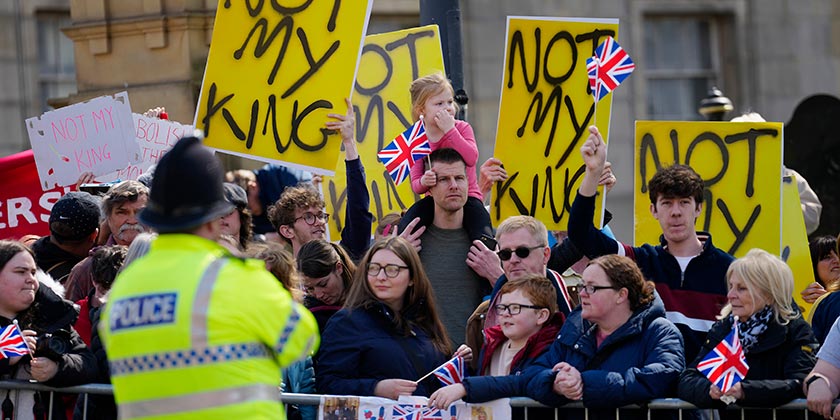 Tacqoyma günündə monarxiyaya qarşı nümayişlər Şotlandiya və Uelsin paytaxtlarında planlaşdırılıb. Şotlandiyanın ötən ay seçilən yeni lideri Həmzə Yusaf bəyan edib ki, monarxiyaya son qoymaq istəyir.