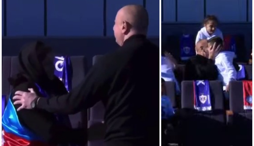 Moderator.az xəbər verir ki, Azərbaycan Prezidenti İlham Əliyev Xankəndidəki tarixi futbol oyununa Şəhid uşaqlarını və valideynlərini özü ilə aparıb.