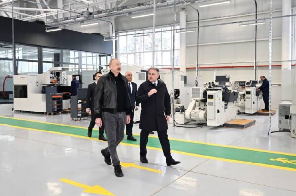xəbər verir ki, dövlətimizin başçısı əvvəlcə Ulu Öndər Heydər Əliyevin zavodun həyətində ucaldılmış büstü önünə gül dəstəsi qoydu.