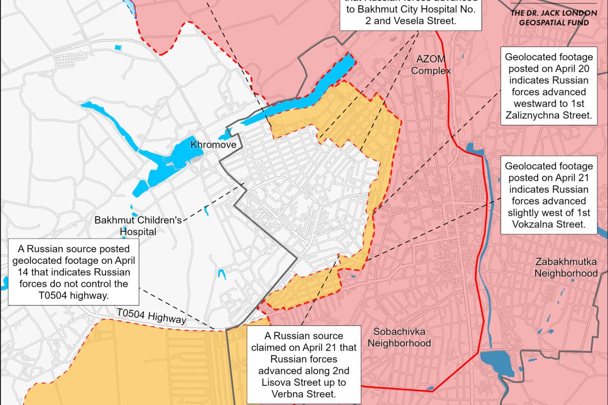 Rusiyalı “hərbi müxbirlər” deyir ki, “Vaqner qrupu” özəl hərbi şirkətinin muzdluları bu rayonda yerləşən yollara hücum etməyə və şəhəri mühasirəyə almağa cəhd edir. Lakin aprelin 22-si tarixinə uğur qazanılmayıb.