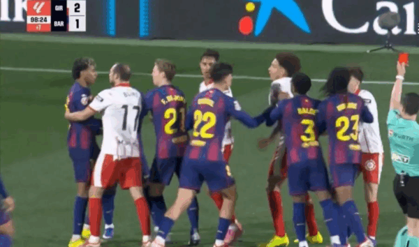 QOL.az xəbər verir ki, matçın 90+9-cu dəqiqəsində “Jirona”nın yarımmüdafiəçisi Joel Roka Kataloniya təmsilçisinin futbolçusu Lamin Yamala qarşı sərt qayda pozuntusu edib.